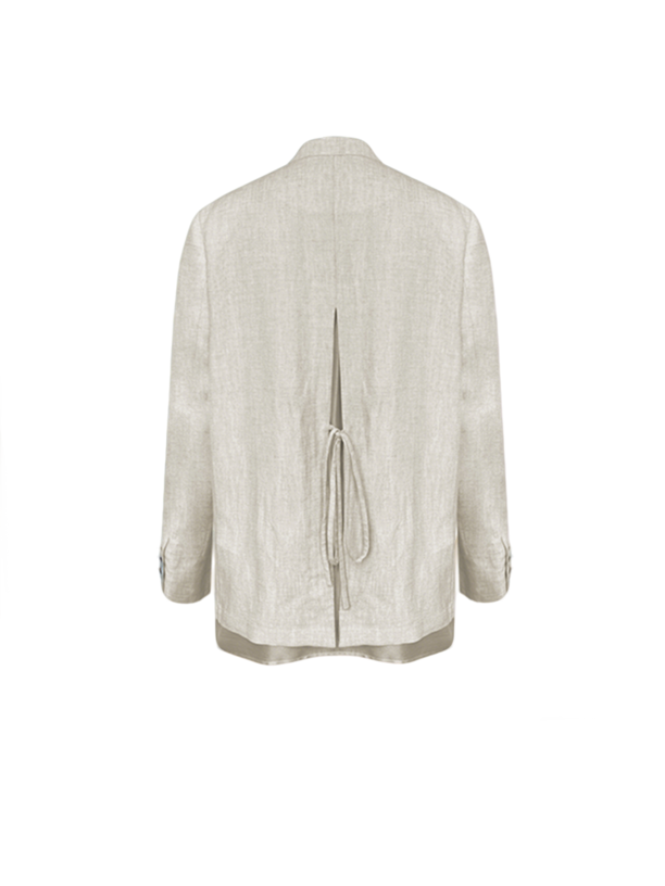 面料:42%天丝 48%亚麻 5%锦纶 5%银葱 里布:55%聚酯纤维 45%粘纤